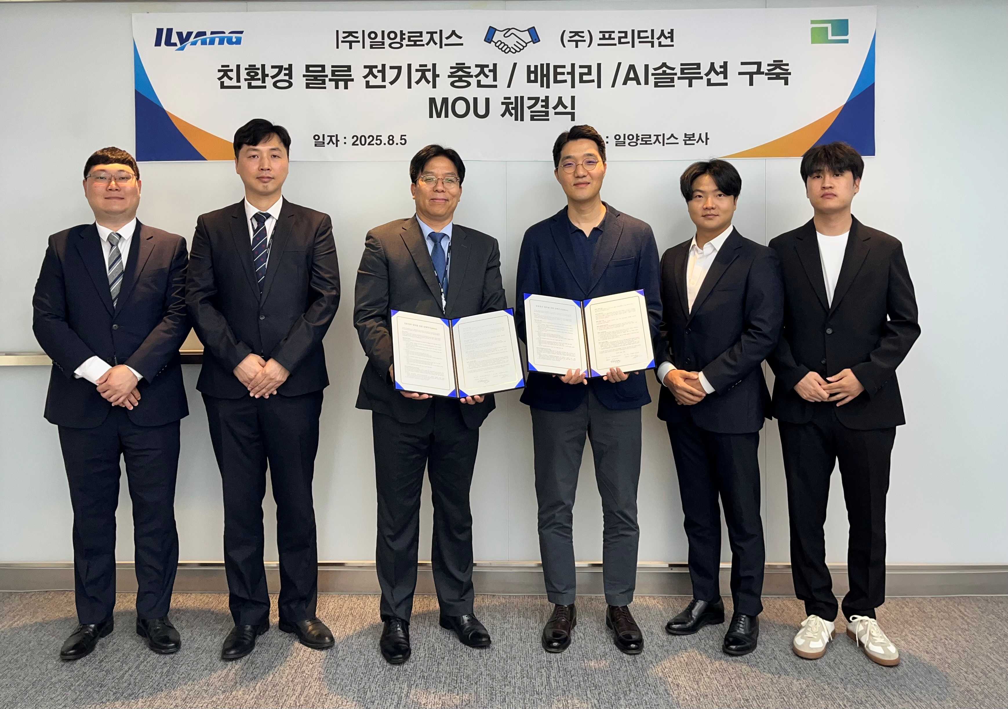 앞으로 일양로지스는 ESG경영방침에 따라 보유 중인 모든 차량을 전기차로 교체할 계획이다. 차량의 탄소배출 제로화는 물론, 운행의 효율성과 안전성 그리고 경제성까지 확보하기 위해서는 배터리의 효율적인 유지관리가 핵심인 것이다 따라서 지난 8월5일 전기차 충전·배터리 운영V2X플랫폼기업 프리딕션과 탄소중립 실현 및 국내 스타트업 활성화를 위한 전략적 업무협약(MOU)을 체결하였다. 프리딕션은 경희대 김두호교수가 창업한 스타트업으로 일양로지스는 이번 협약을 통해 운행 중인 전기차의 운영 및 충전 데이터를 공유하고 물류기업에 특화된 배터리 가치 평가와 AI솔루션을 함께 구축할 계획이다.